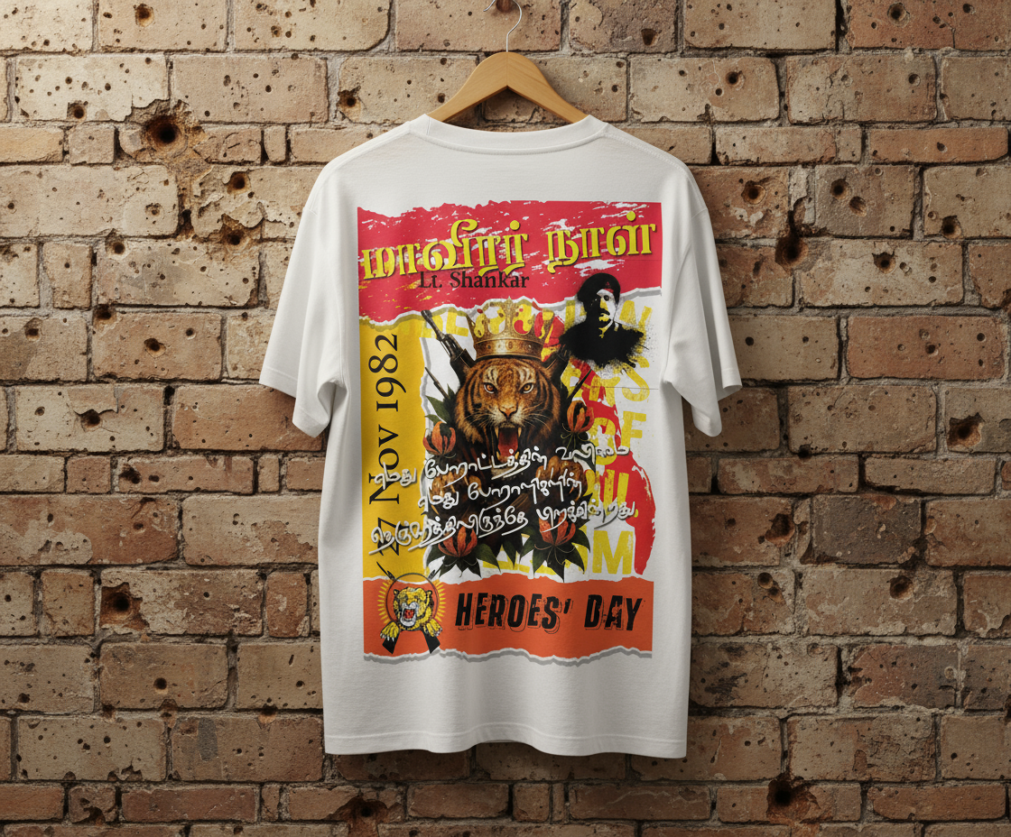This tee combines bold cultural identity with everyday style, designed to celebrate and remember Tamil martyrs meaningfully